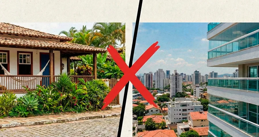 Ao comparar casa x apartamento, vale destacar que apartamentos geralmente têm limitações quanto à personalização de fachadas, áreas externas e até algumas mudanças internas, dependendo das regras do condomínio.