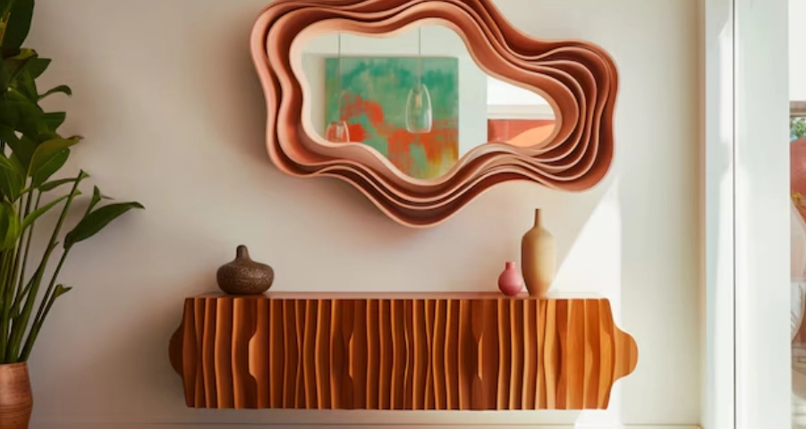 Móveis e acessórios com formas orgânicas e curvas são tendência neste ano, trazendo suavidade e conforto à decoração. Sem precisar comprar móveis caros, você pode aplicar essa ideia com itens como espelhos redondos baratos, tapetes circulares, almofadas arredondadas ou luminárias simples com curvas — elementos pequenos que fazem toda a diferença.